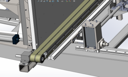 The conveyor bearing blocks are fixed on an 8mm milled flat steel plate. The height of the bearing blocks can be adjusted to convey small pieces of glass smoothly. Increasing the load-bearing capacity of the glass.