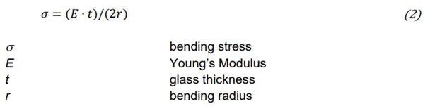 Figure 10. Bending stress formula and key parameters for curved glass design.