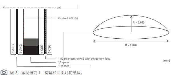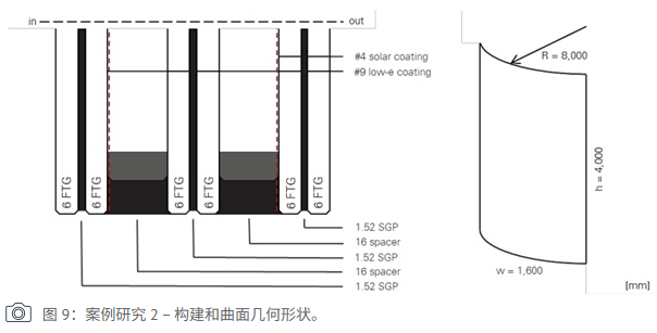 Figure 8. Case study 1: Curved glass facade application with low‑anisotropy glass.